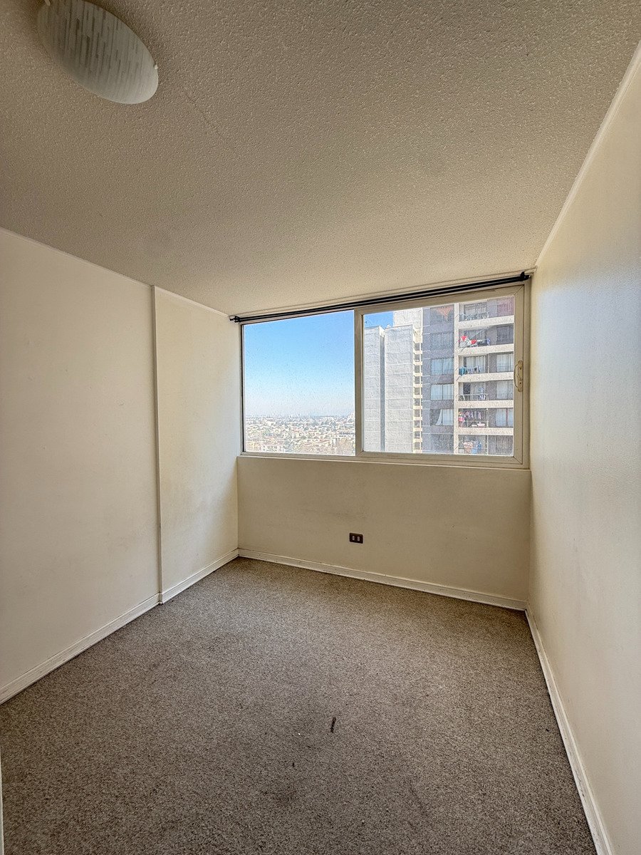 Departamento en arriendo ubicado en la calle Radal 18, a pocos metros de la estación de Metro Ecuador y frente a la Clínica Bicentenario. Situado en el piso 15 de un edificio de 22 niveles, el inmueble ofrece proximidad a múltiples servicios. El departamento cuenta con cocina independiente amoblada y equipada, incluyendo cocina encimera eléctrica, horno y campana. Dispone de living comedor con acceso directo a una terraza, dos dormitorios con closet, siendo el principal en suite, y dos baños completos. La superficie de terraza es de 5 m². El edificio posee amenities como terraza panorámica, quinchos, piscina, sala de eventos, gimnasio y estacionamientos para visitas. Además, cuenta con conserjería y servicio de seguridad las 24 horas. El acceso se facilita mediante ascensor. No incluye estacionamiento ni bodega. Se permite la tenencia de mascotas. El monto de gastos comunes es de 90.000 CLP mensuales. Condiciones de arriendo: el valor es de $295.000 durante los primeros tres meses y $340.000 desde el cuarto hasta el duodécimo mes. La garantía puede ser pagada en hasta tres cuotas. Se deben presentar antecedentes laborales y financieros para aplicar, junto a la documentación necesaria especificada.