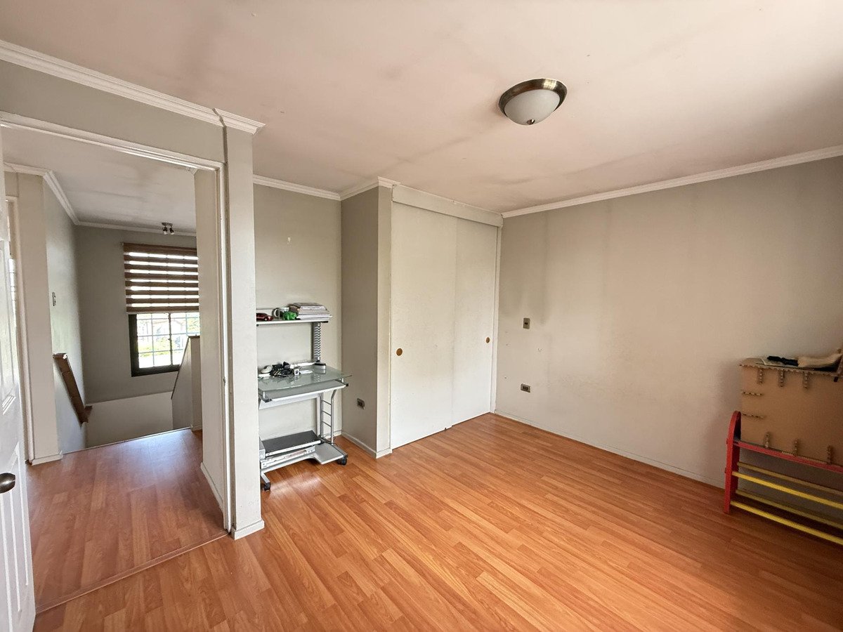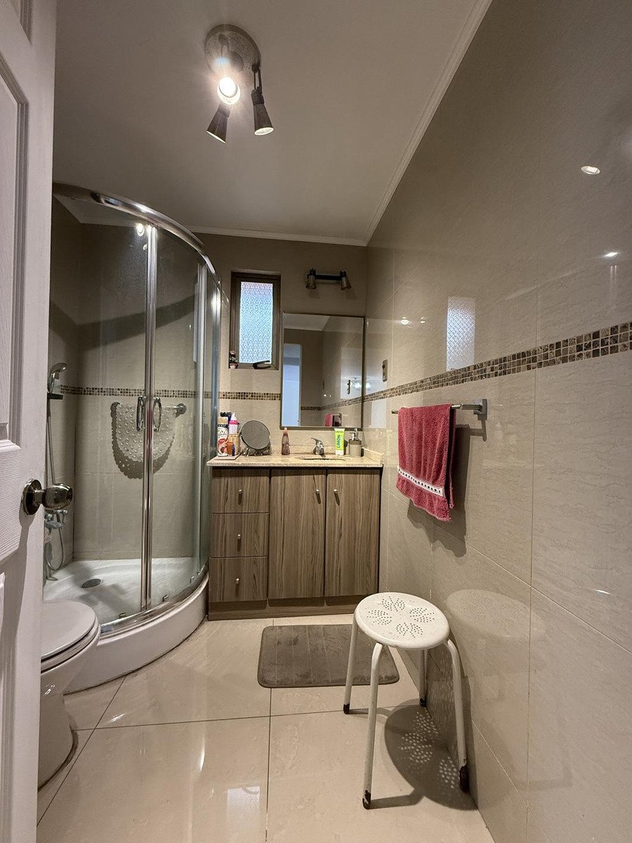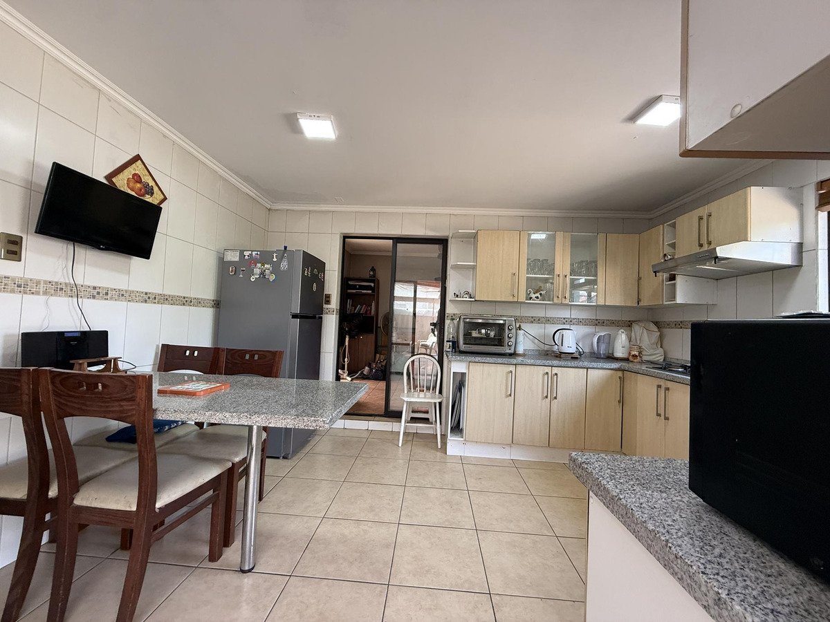 Hermosa casa en venta en San Miguel con piscina. Ubicada en un sector residencial a pasos del Metro Departamental y muy cerca de Gran Avenida, con excelente conectividad y cercanía a farmacias, bancos y centros de salud y educación. La propiedad, de 492 m² de terreno y 254 m² construidos aprox., ofrece 6 dormitorios y 4 baños distribuidos en dos niveles. En el primer piso encontrarás antejardín, entrada para tres vehículos y garage para dos autos, hall de acceso y amplio living comedor con ventanal hacia un patio interior con piso de piedra pizarra y porcelanato. Ventanas termopanel. Tres habitaciones con closet (una apta como dormitorio de servicio), dos baños completos con shower door y cocina independiente amoblada y equipada, con encimera a gas, campana y cubierta de granito. Incluye cuarto de lavado interior. En el segundo nivel, tres habitaciones amplias y dos baños completos, todos con aire acondicionado y calefacción. El patio destaca por su gran espacio: piscina con bomba, quincho techado, bodega u oficina de buen tamaño, área verde y árbol frutal. Portón automático y recepción final. Sin gastos comunes. Apta para crédito. Precio negociable y se reciben ofertas. Ideal para familias que buscan confort, conectividad y vida al aire libre en San Miguel.