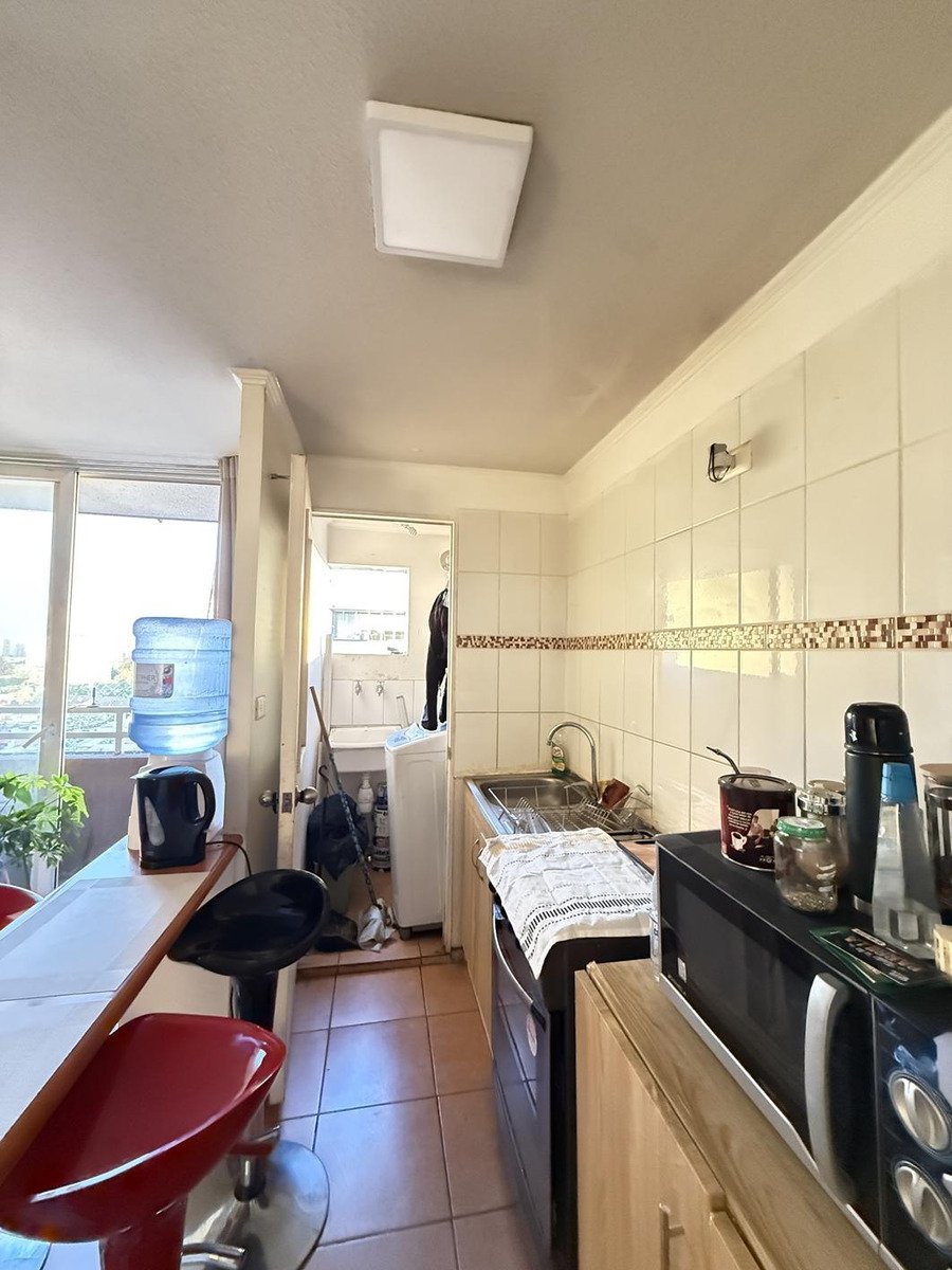 Departamento ubicado en Avenida Lo Ovalle 0854, esquina Cuarta Transversal, en un sector con alto tránsito y cercanía a Gran Avenida, estación Metro Lo Ovalle, Mall Espacio Urbano, Hiper Lider y diversos servicios esenciales. El inmueble se encuentra en el piso 14 y tiene orientación oriente. El departamento cuenta con living comedor con salida a balcón, cocina estilo americana amoblada y logia separada con calefont. Dispone de tres dormitorios con closet, dos de ellos de menor tamaño, adecuados para cama de una plaza, y un baño completo. El condominio ofrece piscina, áreas verdes, estacionamientos para visitas, gimnasio, conserje las 24 horas y ascensores. El gasto común es de $60.000 en promedio. Vende GESCOR PROPIEDADES LTDA. Agente a cargo: Erika Pérez Arellano.