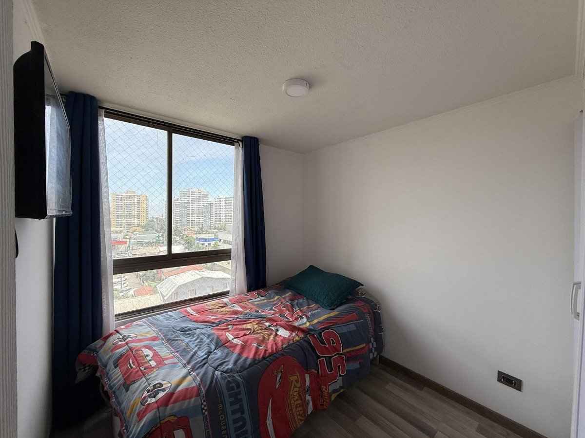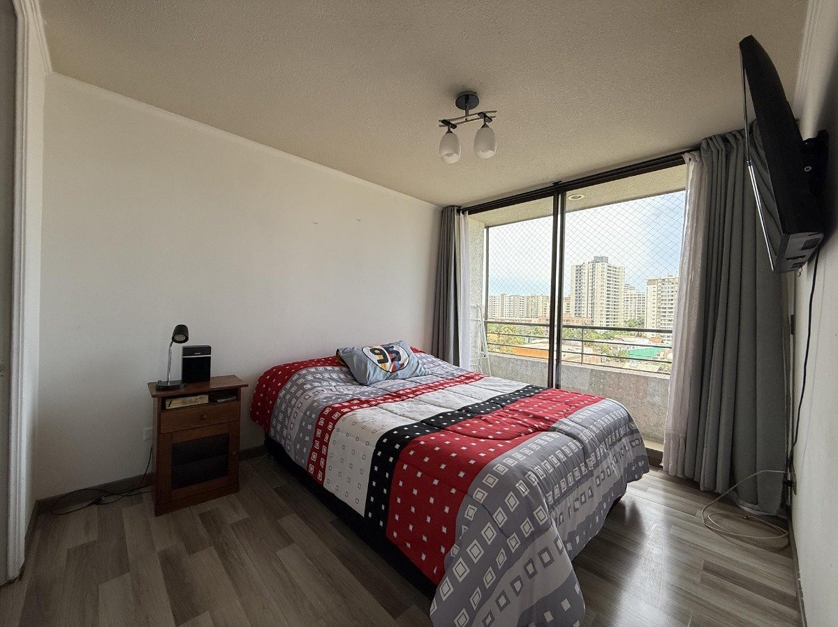 Departamento ubicado en Vargas Buston 1051, en el séptimo piso de un edificio de 18 niveles. Situado a poca distancia de Gran Avenida y de la estación de metro Ciudad del Niño, el entorno ofrece locales y centros comerciales, centros de salud y una amplia conectividad vial mediante autopista central. La zona cuenta con variedad de colegios y jardines infantiles. El departamento, con orientación norponiente y una superficie total de 80 m², dispone de hall de acceso, living comedor con salida a una terraza tipo L, cocina independiente amoblada, logia separada, tres dormitorios con closet, donde el principal incluye baño en suite y walk-in closet, y dos baños completos. Se incluye un estacionamiento en subterráneo. El condominio ofrece acceso a terraza panorámica en el último piso, quinchos, sala de eventos, sala de lavandería, gimnasio, áreas verdes interiores, piscina, juegos para niños y estacionamientos de visitas. El valor de los gastos comunes es de 120.000 CLP mensuales en promedio. Se admiten mascotas.