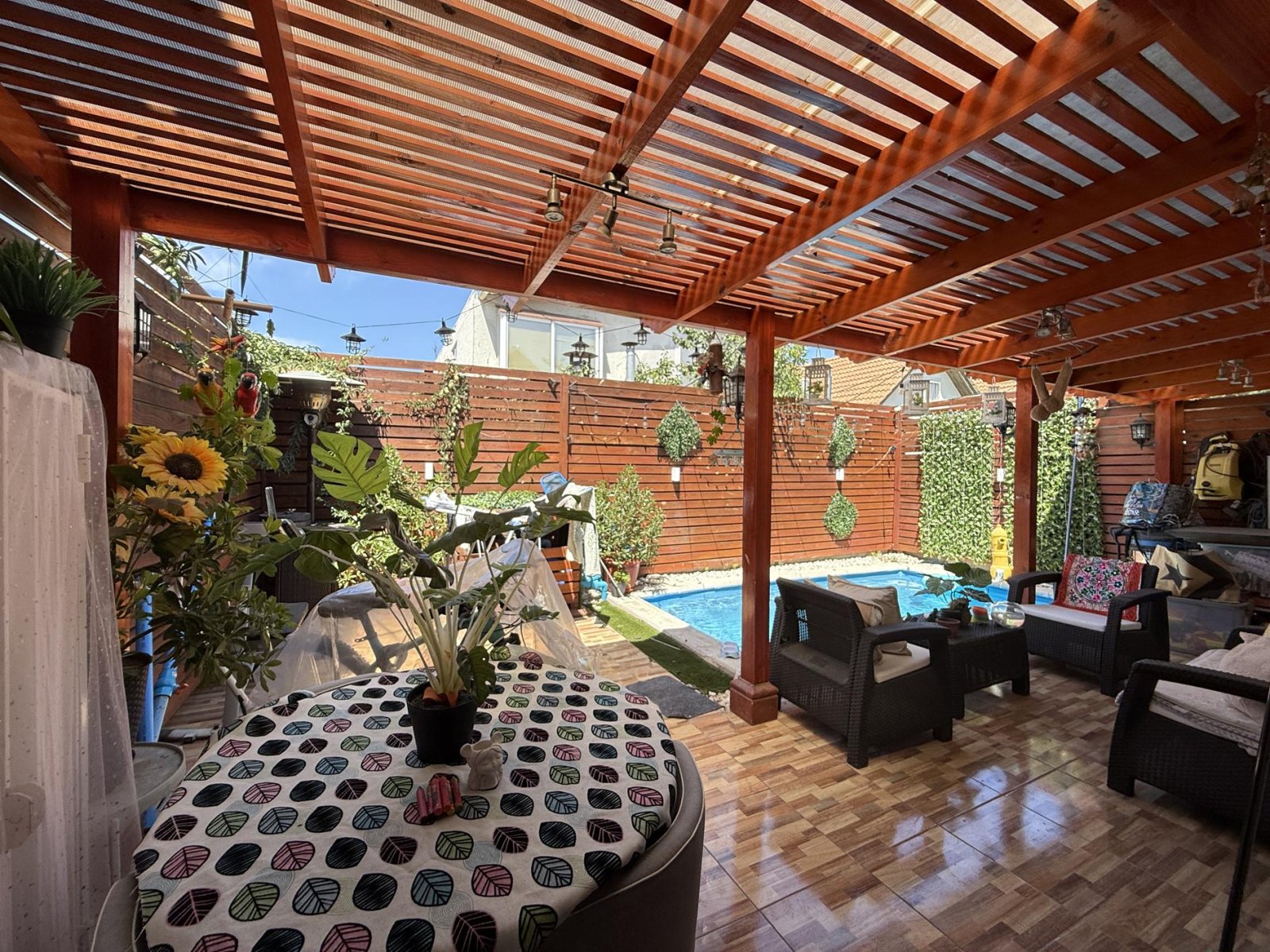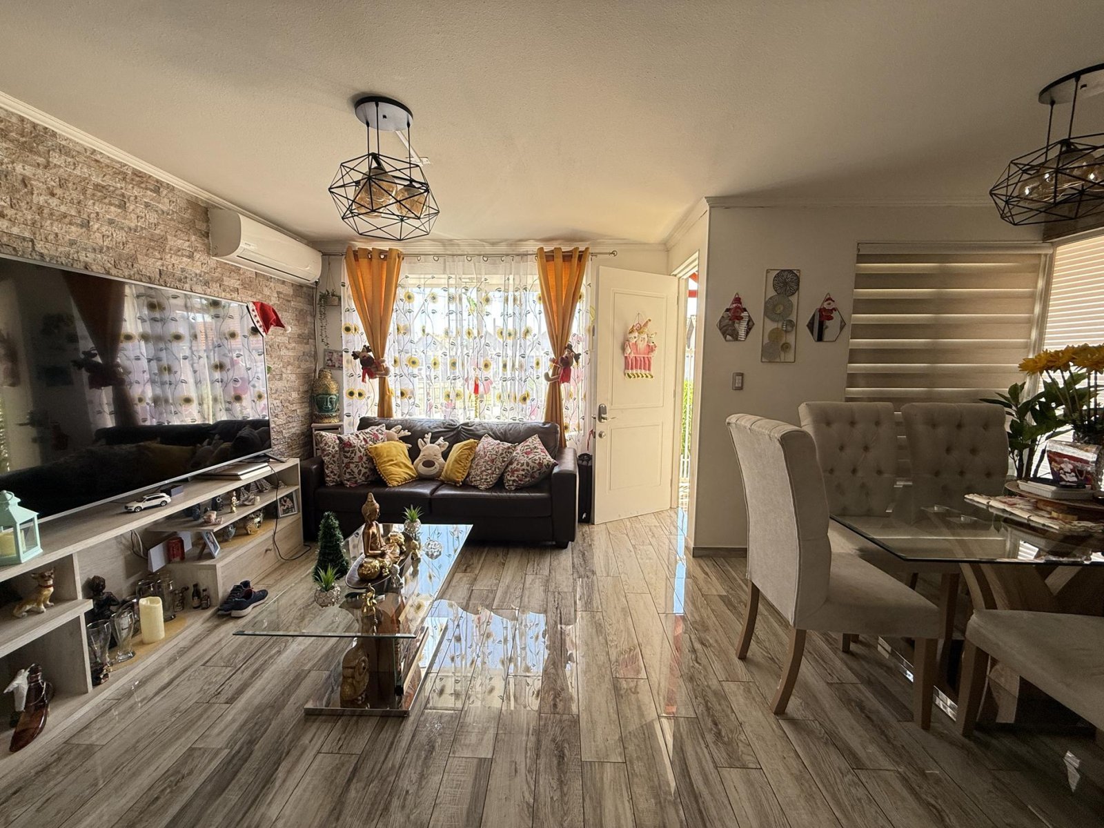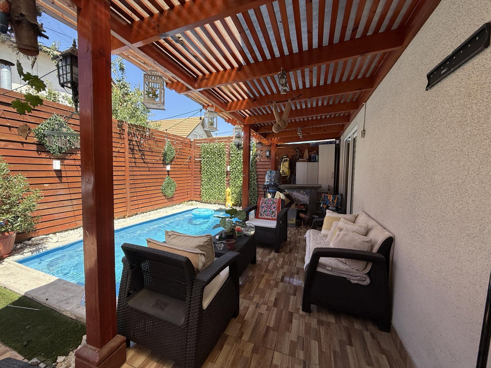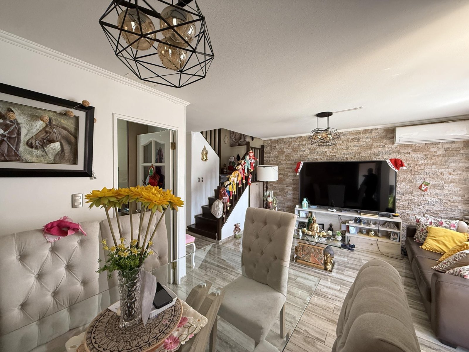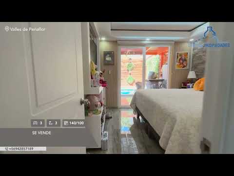 GESCOR PROPIEDADES VENDE, Hermosa casa de 2 pisos ubicada en Valles de Peñaflor, cerrado con portones electricos y camaras de seguridad, a un costado de la Autopista del Sol, con acceso por Pajaritos, microbarrio familiar, tranquilo, de buen vivir, ideal para la crianza de tus hijos y el crecimiento de la familia. La casa cuenta con antejardín, 1 estacionamiento, living comedor con revestimiento en piedra en muro, cocina independiente amoblada y equipada con cocina encimera a gas, horno, campana, cubierta de cuarzo, piso porcelanato brillante, 1 baño de visitas, dormitorio principal en suite con shower door, con luces led y lindos detalles como revestimiento en piedra en el muro, rack flotante para el televisor, salida al patio con piscina, terraza. Finas terminaciones. En segundo piso encontramos 2 habitaciones grandes y separadas, sala de estar u oficina, otro baño completo, piso porcelanato brillante. Patio interior con piscina, sector de terraza y con espacio un quincho. La casa cuenta con repepción final, es del año 2018, moderna y completamente remodelada en su interior. No se paga gasto comun. Agende su visita con Juan Andres al +56942857189